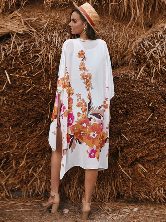 2024 European and American Bikini Blouse Cardigan Summer New Arrival Print Beach Sun Protection Clothing Mid Length Long Length Chiffon Blouse for Women