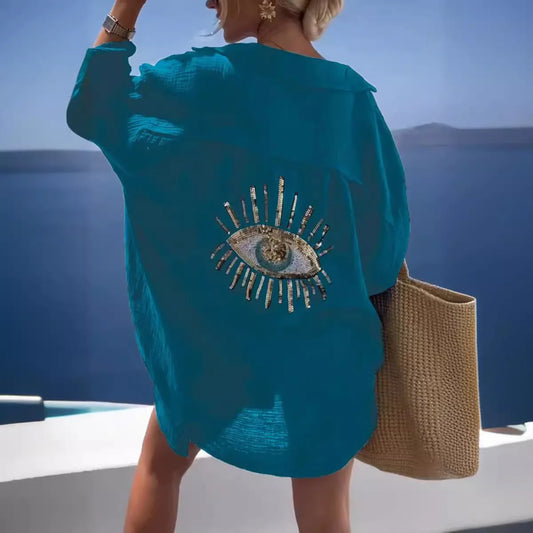 2024 Spring Oversize Women Shirt White Print Turn-down Collar Long Sleeve Loose Blouses Female Casual Trendy Beach Lday Clothes