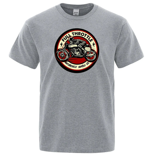 Full Throttle Cafe Racer Rockabilly Biker Printed T-Shirt Men Fashion Casual Short Sleeve Loose Cotton Tshirt Summer Loose Tees