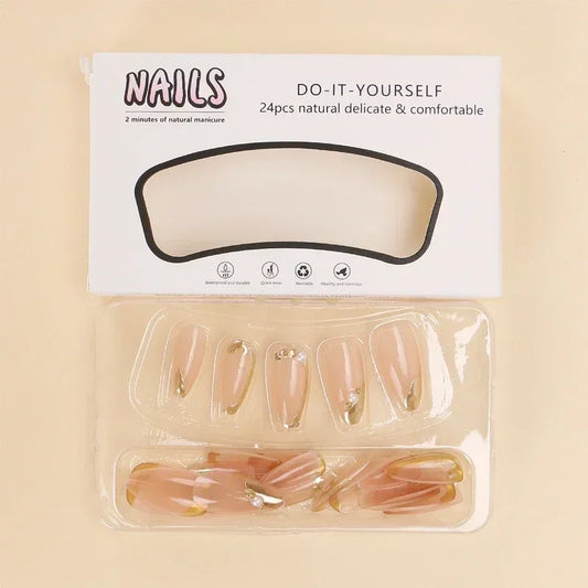 24Pcs Fake Nails Press On Tips Art Supplies Reusable Edhesive False For ABS Artificial Sith Adhesive Full Cover Nail Almond