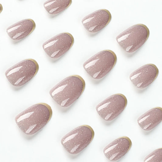 24Pcs Removable Wearable False Nails Art Short Glitter French Gold Edge Fake Nails Waterproof Press on Nail Tips Nails Supplies