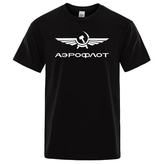 Aeroflot Aviation Russe Pilote Aerospace Aviateur T-Shirt Men Summer Cotton Short Sleeve Fashion Casual Clothes Oversize T Shirt