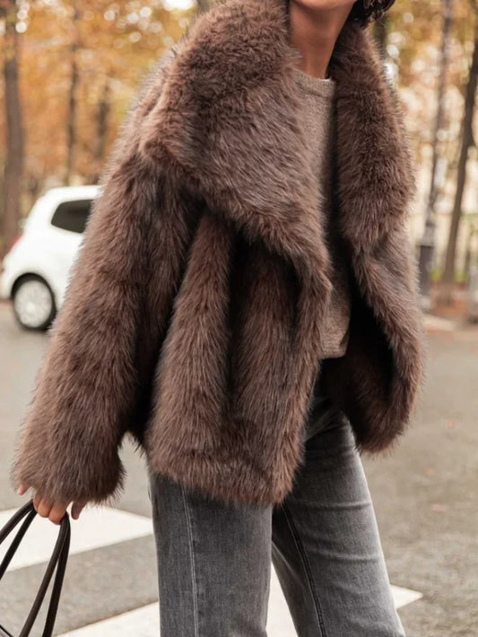 Brown Big Lapel Faux Fur Fury Women's Coats Fluffy Long Sleeved Thick Warm Fury Jackets 2024 Winter Lady Casual Street Outwear