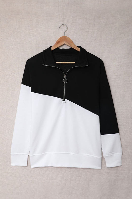Contrast Zip-Up Collared Neck Dropped Shoulder Blouse