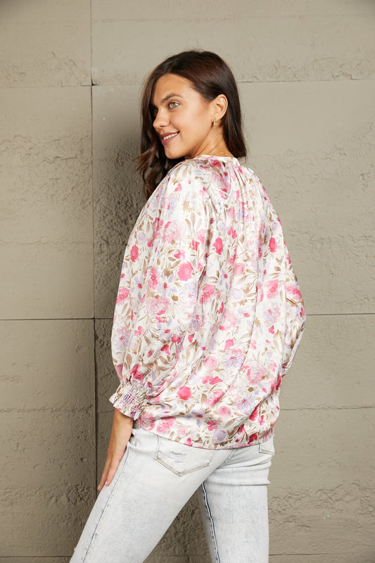 Double Take Full Size Printed Balloon Sleeve Blouse
