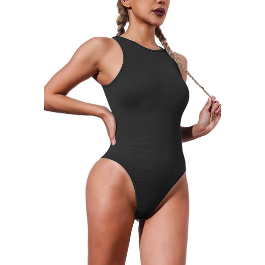 European and American Leisure Pure Color Exercise Sleeveless Jumpsuit Women 2024 Summer New Arrival Thread Fashion Triangle Leggings Women