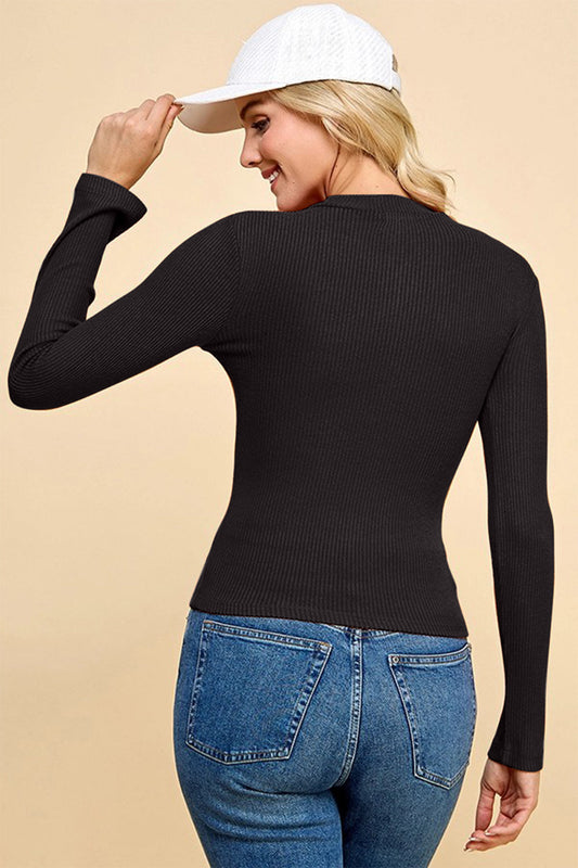 Faith Apparel Half Zip Ribbed Long Sleeve Top