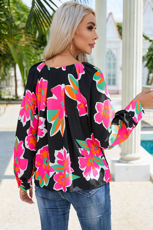 Floral V-Neck Balloon Sleeve Peplum Blouse