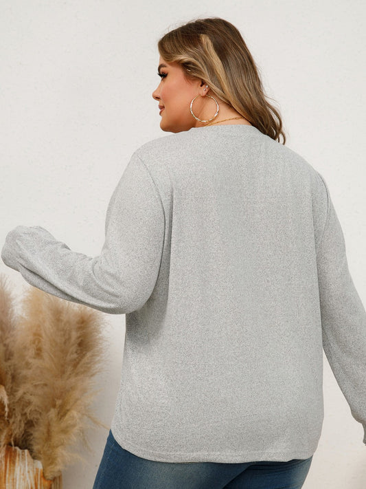 Zenana Full Size Waffle Knit V-Neck Long Sleeve Slit Top