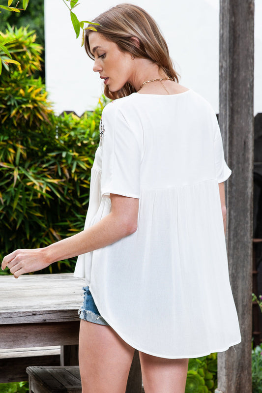 Sold outEmbroidered V-Neck Babydoll Blouse