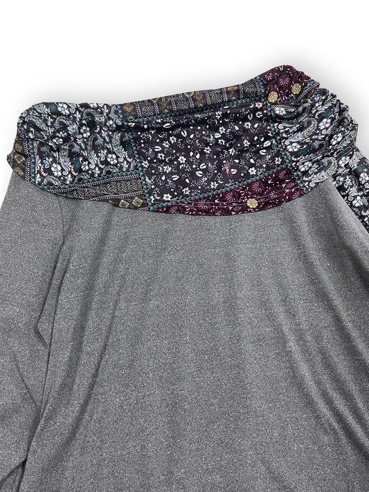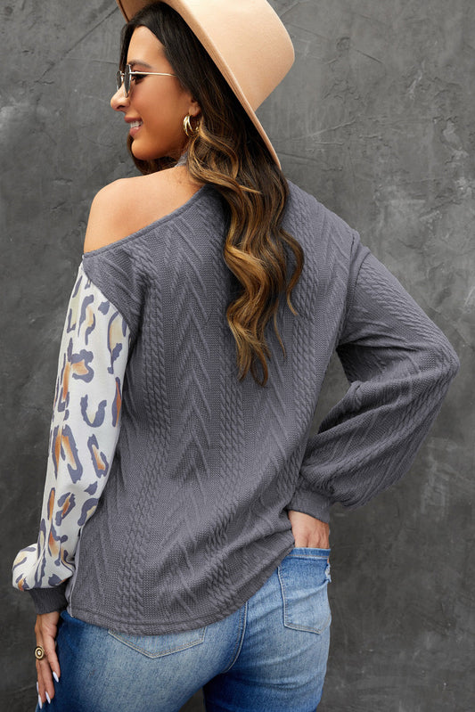 Leopard Color Block Cold Shoulder Turtleneck Top