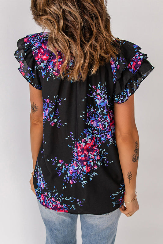 Floral Tie-Neck Flutter Sleeve Blouse