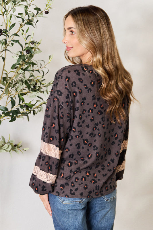 Jade By Jane Full Size Leopard Lace Detail Blouse