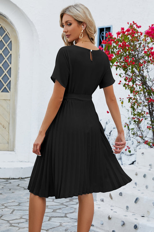 Drawstring Half Button Roll-Tab Sleeve Dress