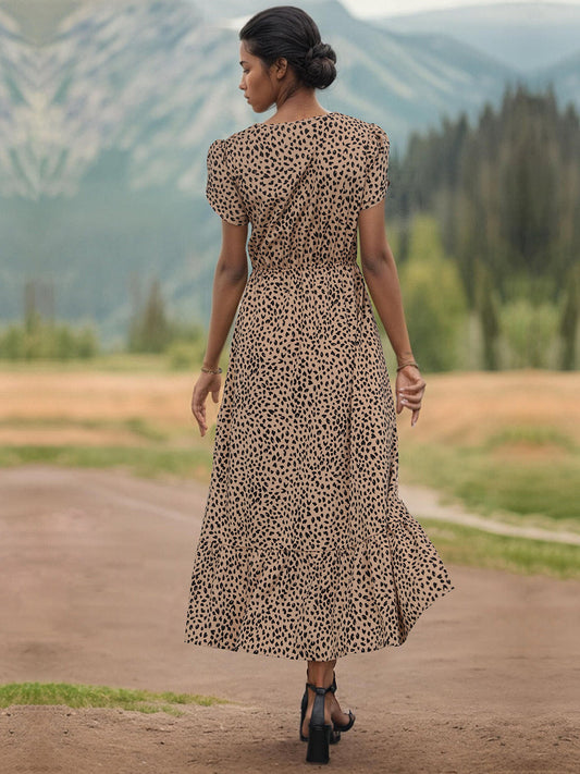 Printed Tie Neck Lantern Sleeve Mini Dress