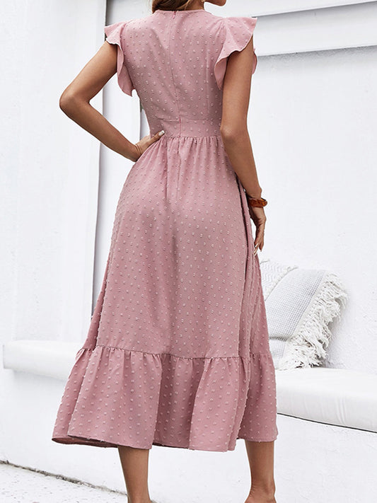 V-Neck Short Sleeve Midi Dress
