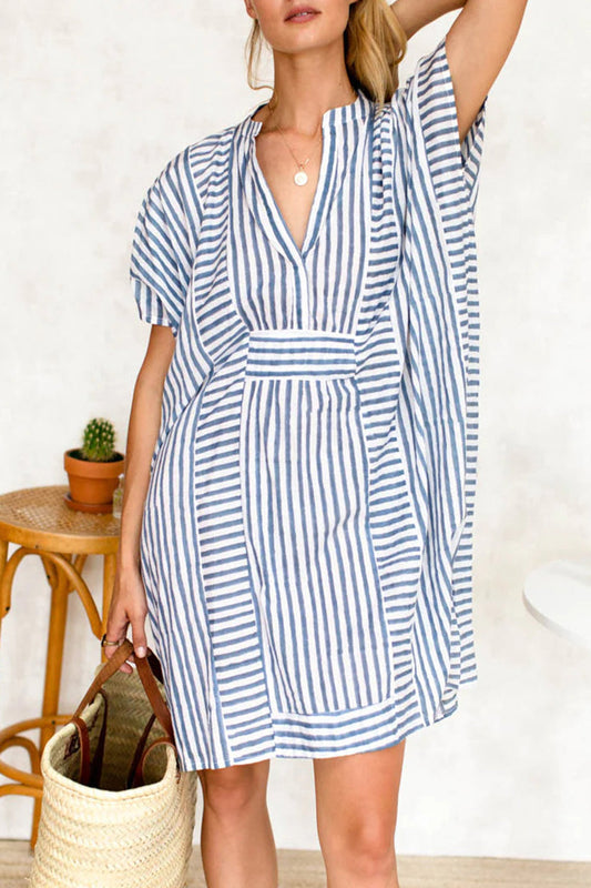 Striped Round Neck Short Sleeve Mini Tee Dress
