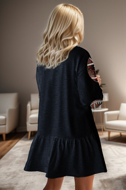 Football Sequin Round Neck Dropped Shoulder Mini Dress