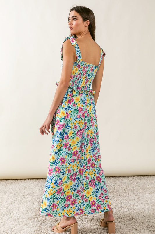 BiBi Floral Ruffle Trim Smocked Cami Dress