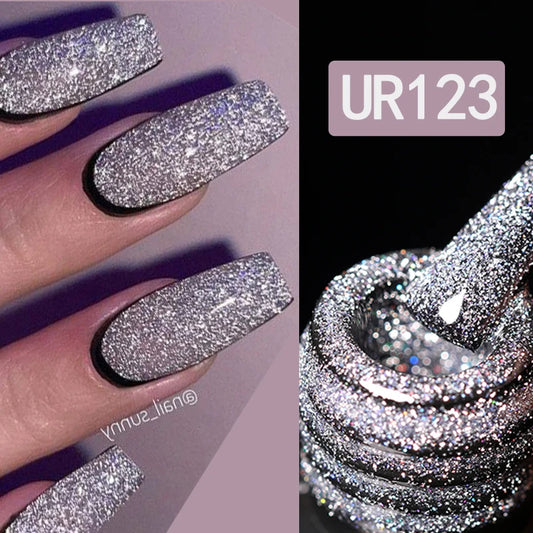 UR SUGAR 7.5ml Champagne Silver Reflective Glitter Gel Nail Polish Laser Sparkling Hybird Soak Off Nail Art UV LED Varnishes