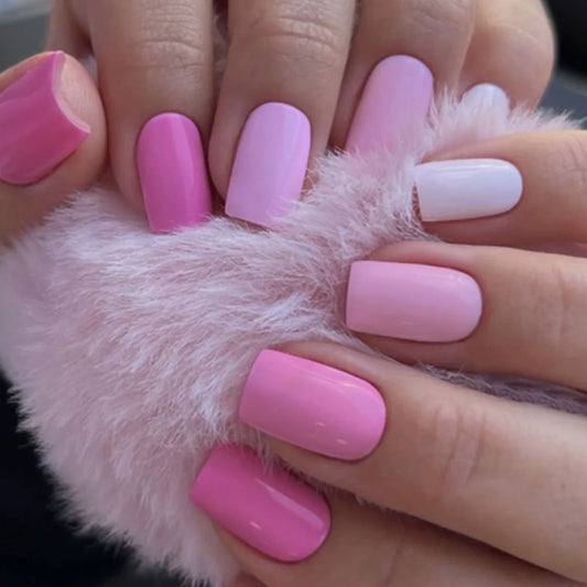 24pcs/set short square fake nails for women girls Pink green blue yellow purple tips faux ongles press on false nail supplies