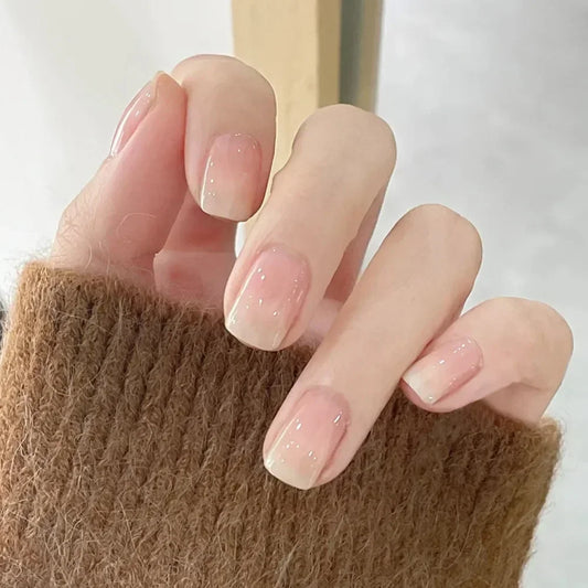 24Pcs Gradient White Fake Nail Short Square Ballet Simple False Nails Press on Wearable Nude Nails Art Full Cover Manicure Tips