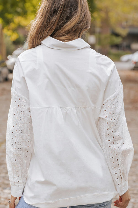 Eyelet Johnny Collar Puff Sleeve Blouse