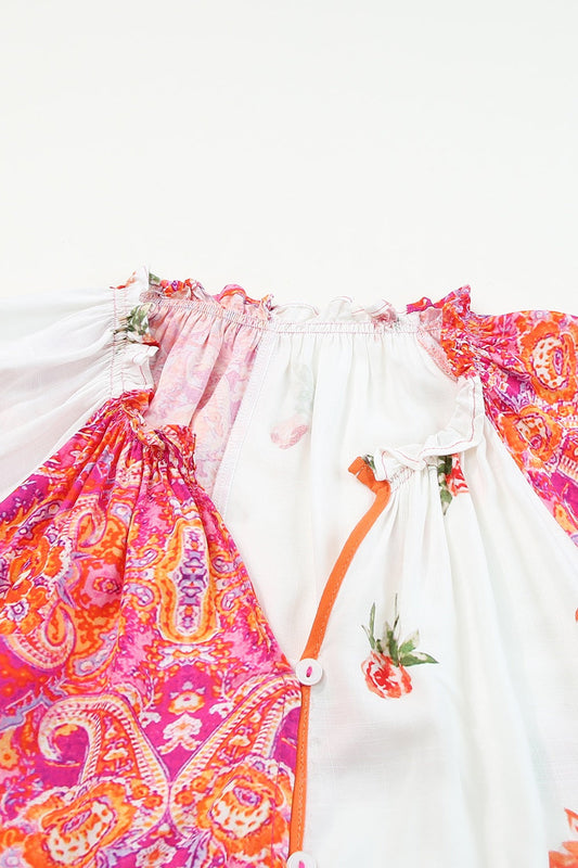 Printed Off-Shoulder Flounce Sleeve Blouse