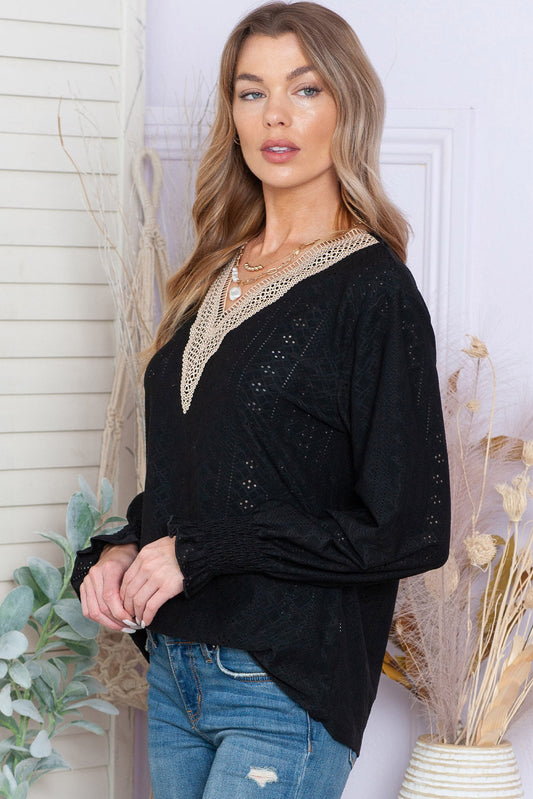 Sold outEyelet V-Neck Flounce Sleeve Blouse