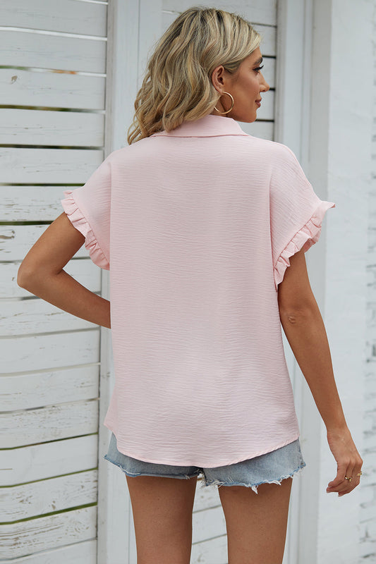 Sold outRuffled V-Neck Short Sleeve Blouse