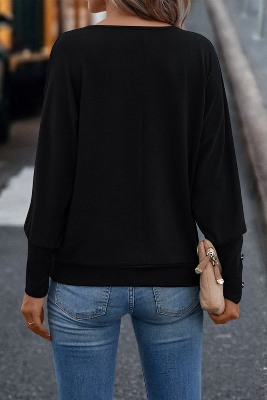 Decorative Button V-Neck Lantern Sleeve Blouse