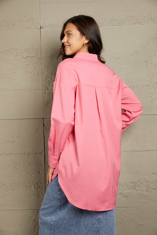 Collared Neck Dropped Shoulder Buttoned Shirt