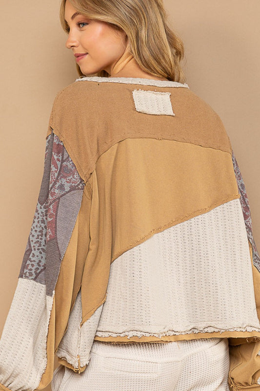 Double Take Multicolored V-Neck Lantern Sleeve Shirt