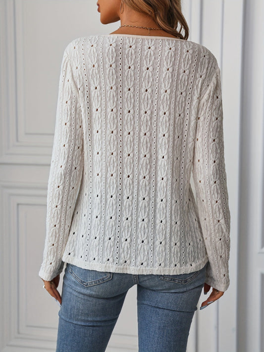 Sold outEyelet Boat Neck Long Sleeve Blouse