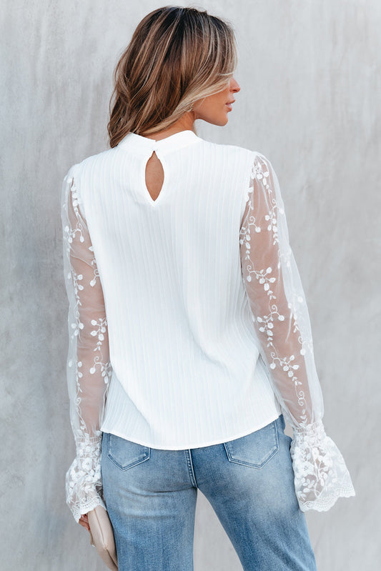 BiBi Swiss Dot Lace Detail Short Sleeve Blouse