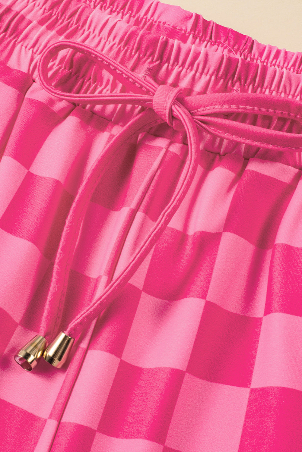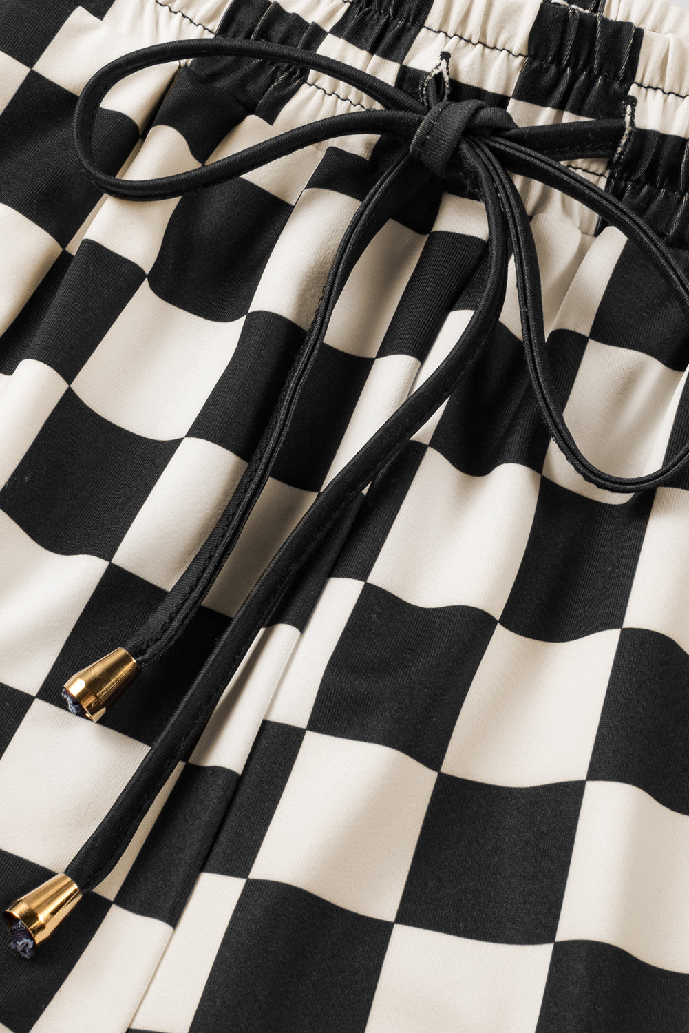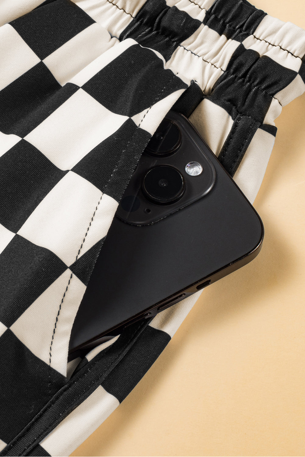 Black Checkered Drawstring Elastic Waist Casual Shorts
