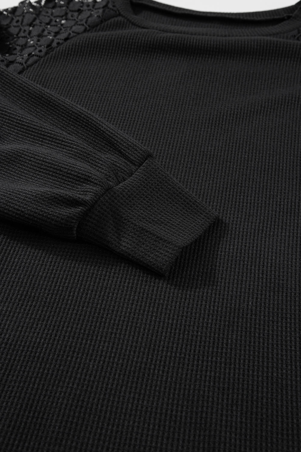 Black Lace Long Sleeve Textured Pullover