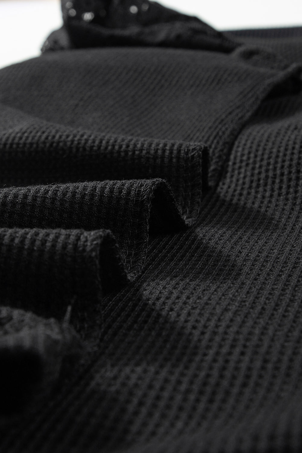 - Add some feminine chic to this waffle-textured top with lace details
