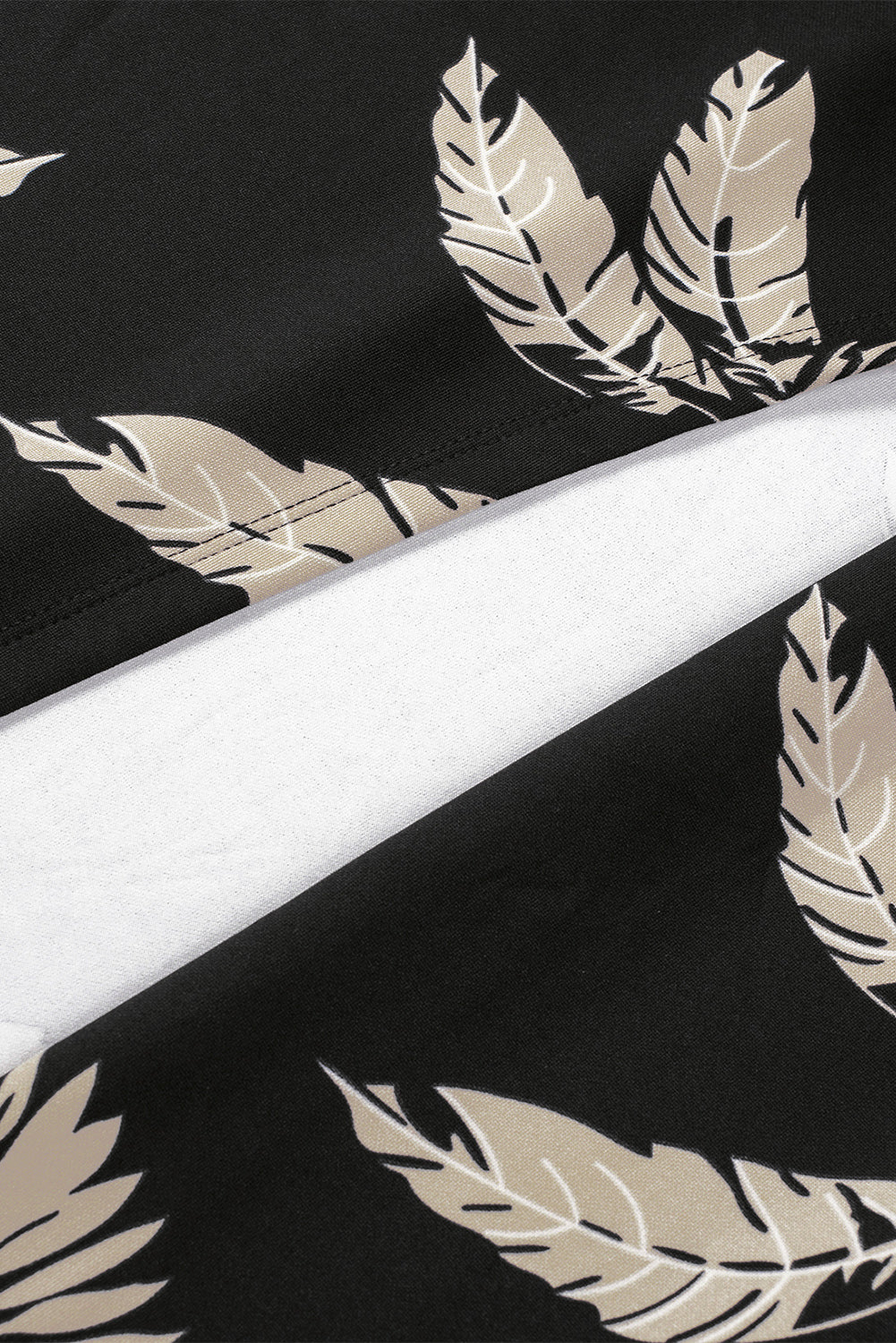 Black Pattern Print Off Shoulder Slit Bodycon Midi Dress