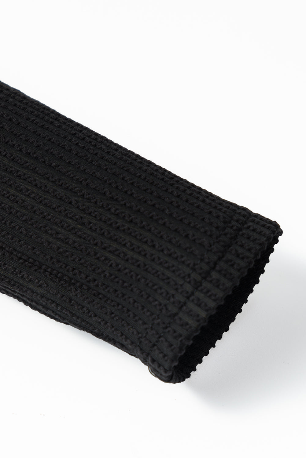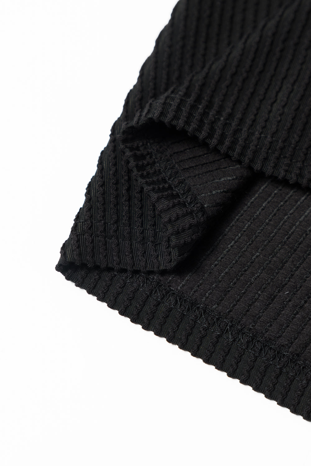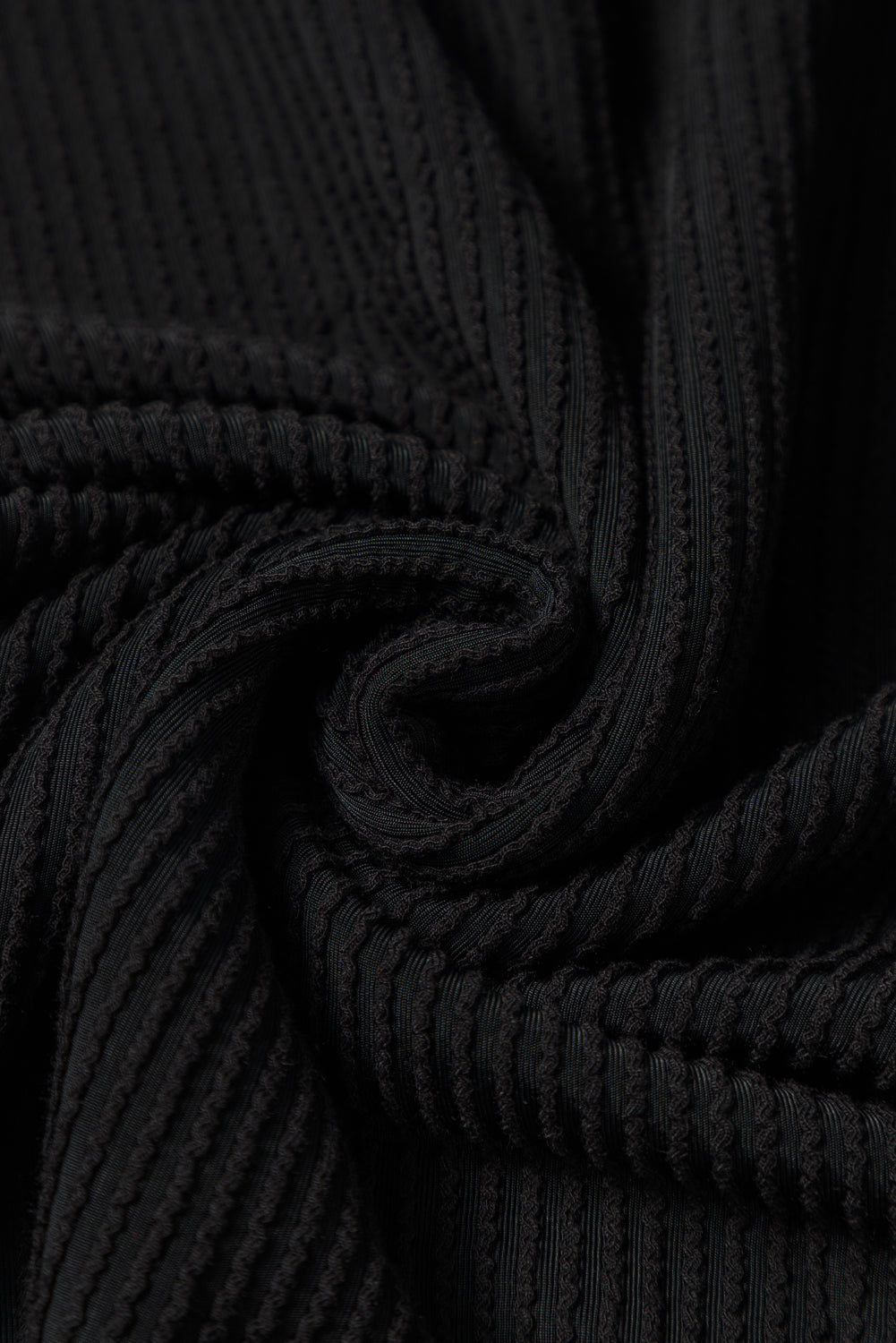 Black Ribbed Twist Cutout Long Sleeve Dress