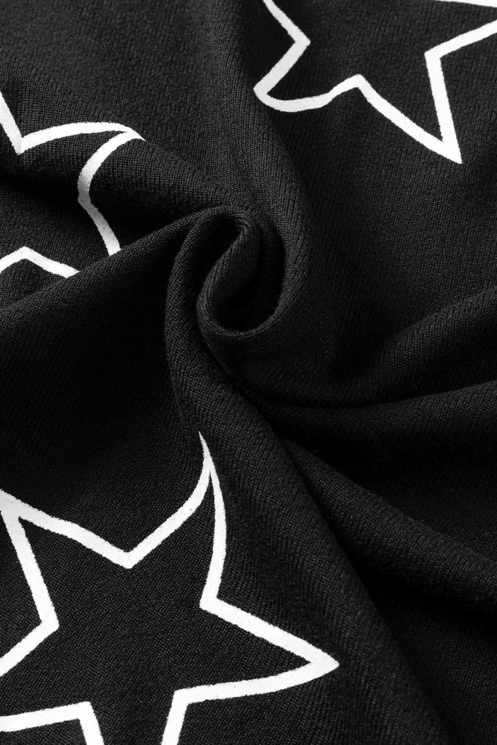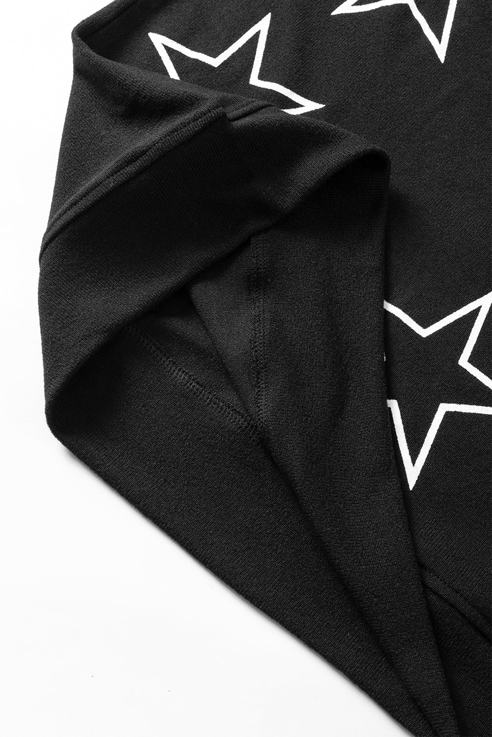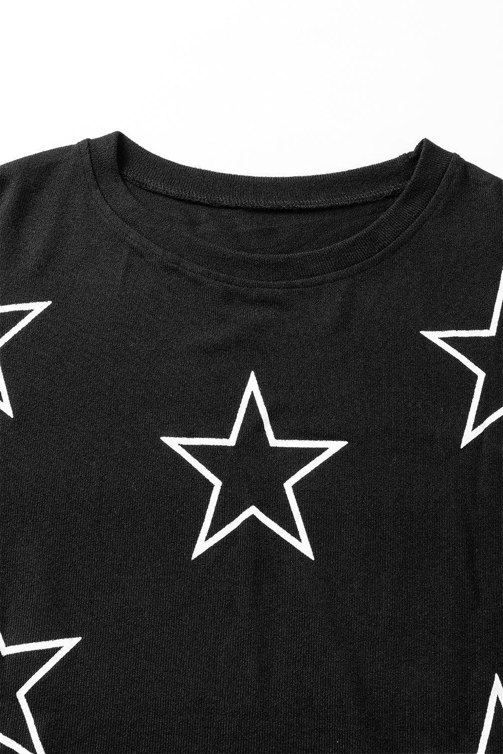 Black Stars Print Long Sleeve Drawstring High Waist Lounge Set