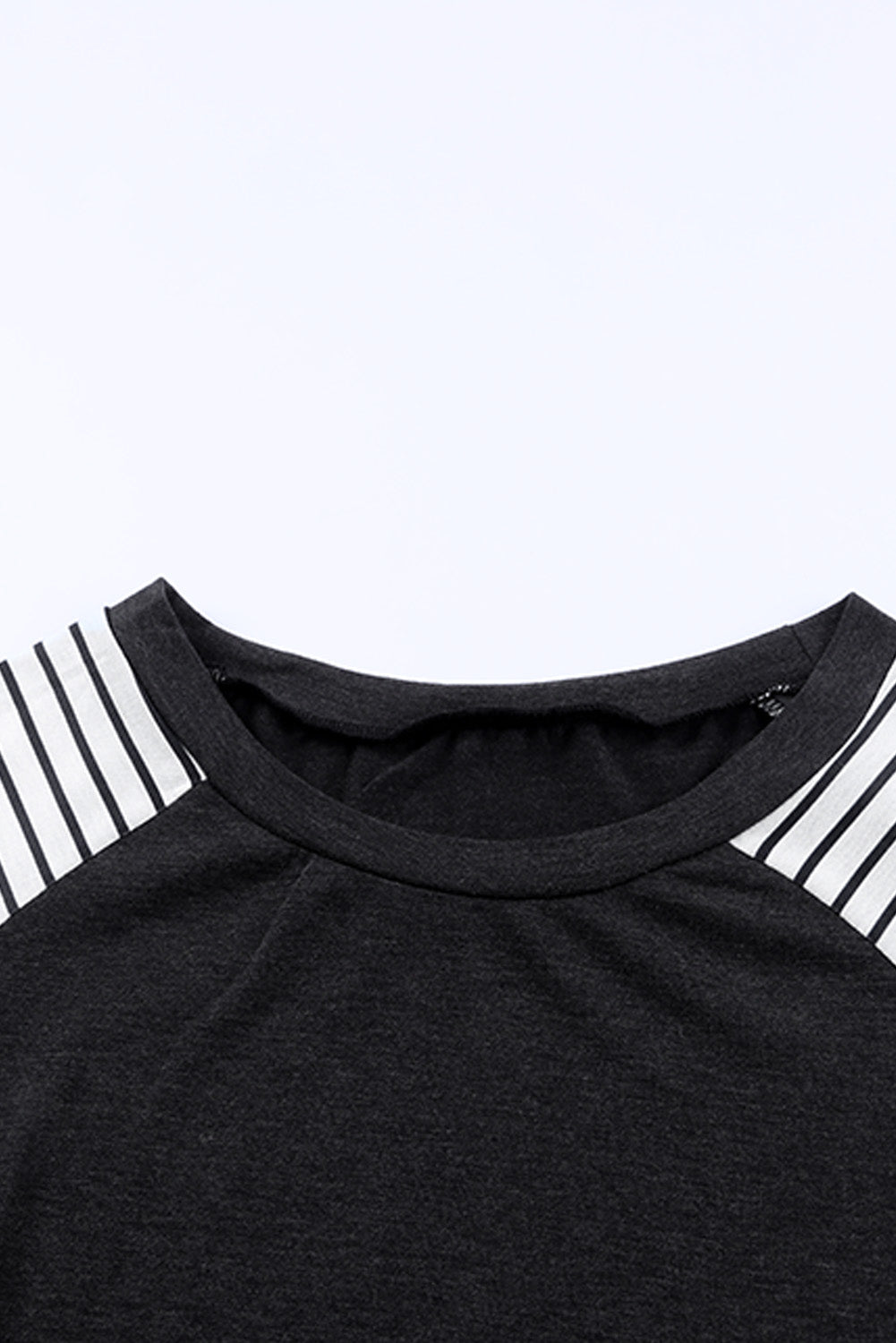 Black Striped Leopard Patchwork Long Sleeve Mini Dress