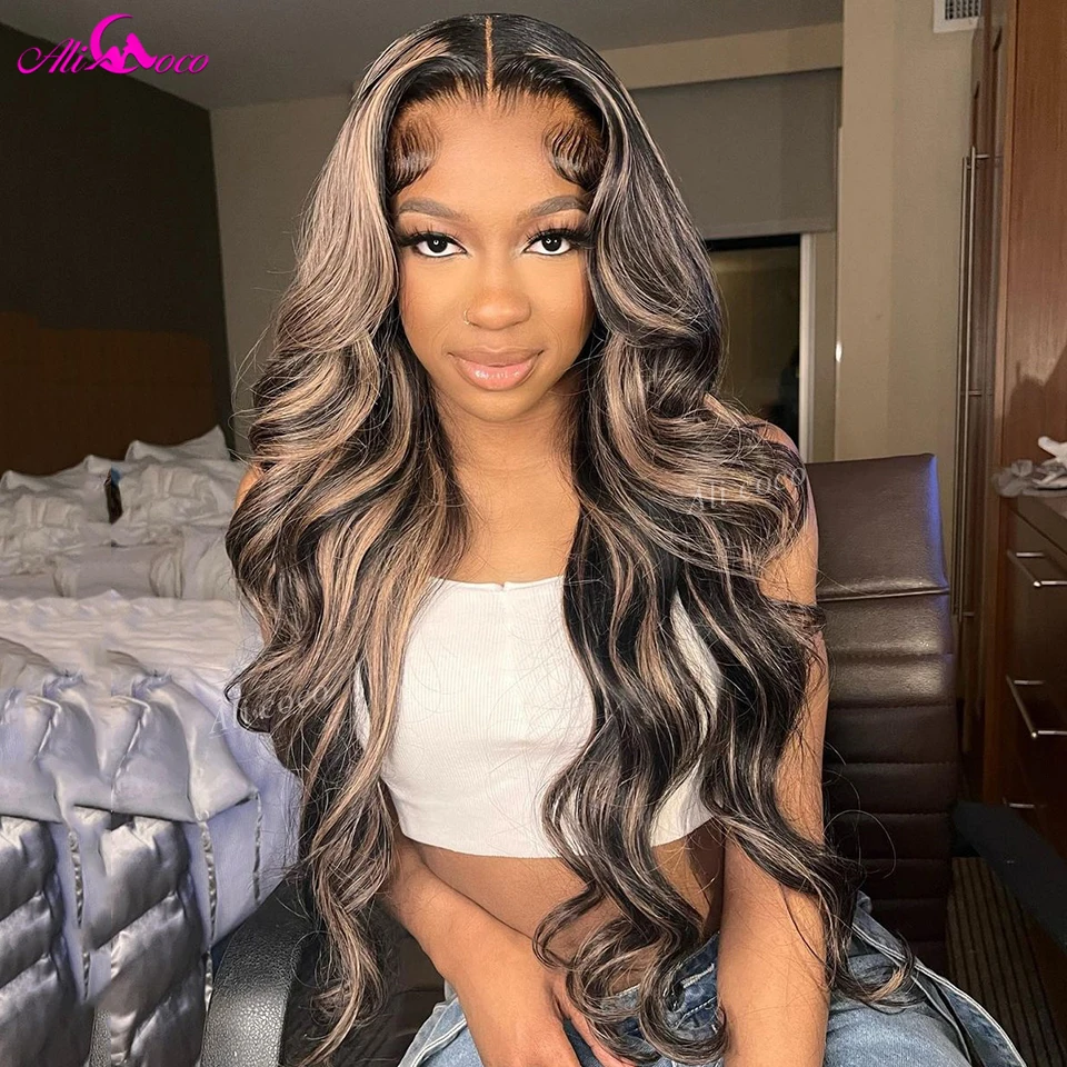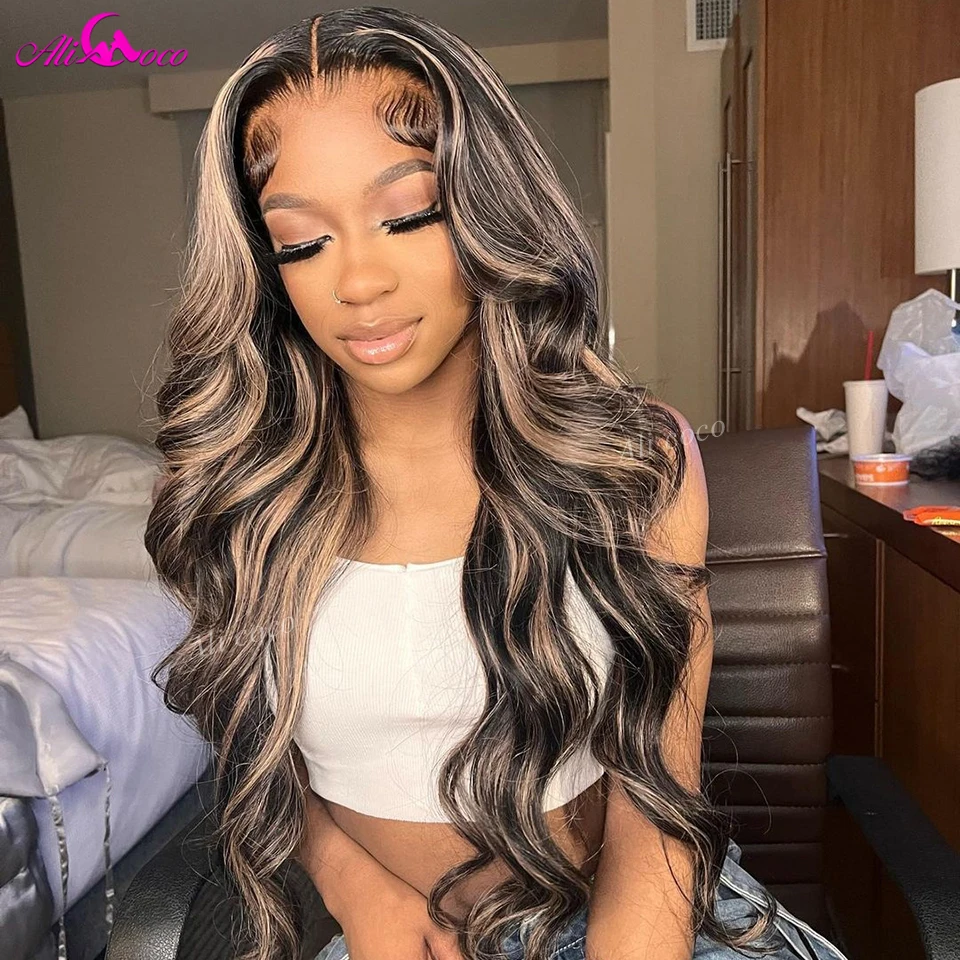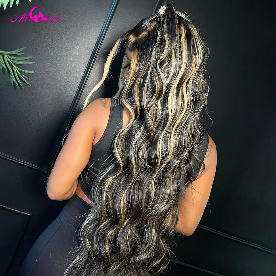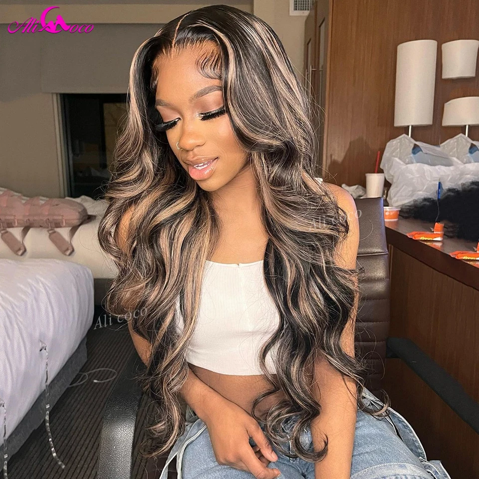 Blonde Highlight Wig 13x4 Lace Frontal Wigs For Black Women 180% Density Body Wave Human Hair Wigs Brazilian Remy Human Hair
