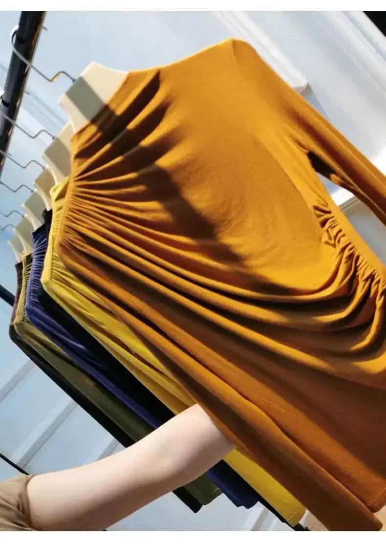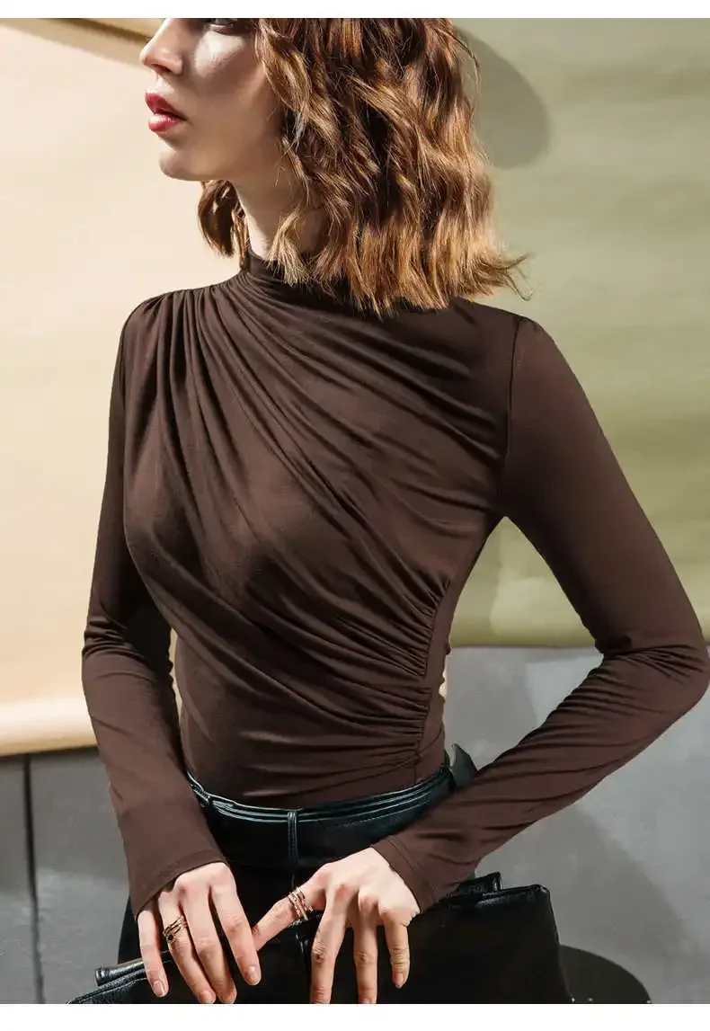 Blouse Women Pleating Long Sleeve Shirts Women's Fall Slim Fit Turtleneck Top Blusas Ropa De Mujer