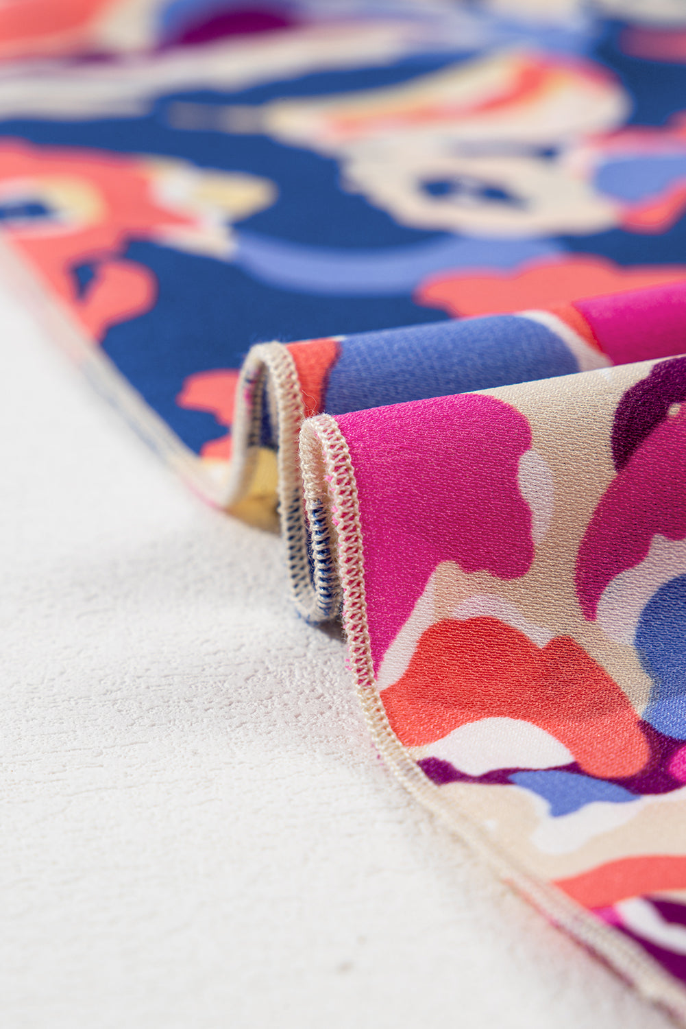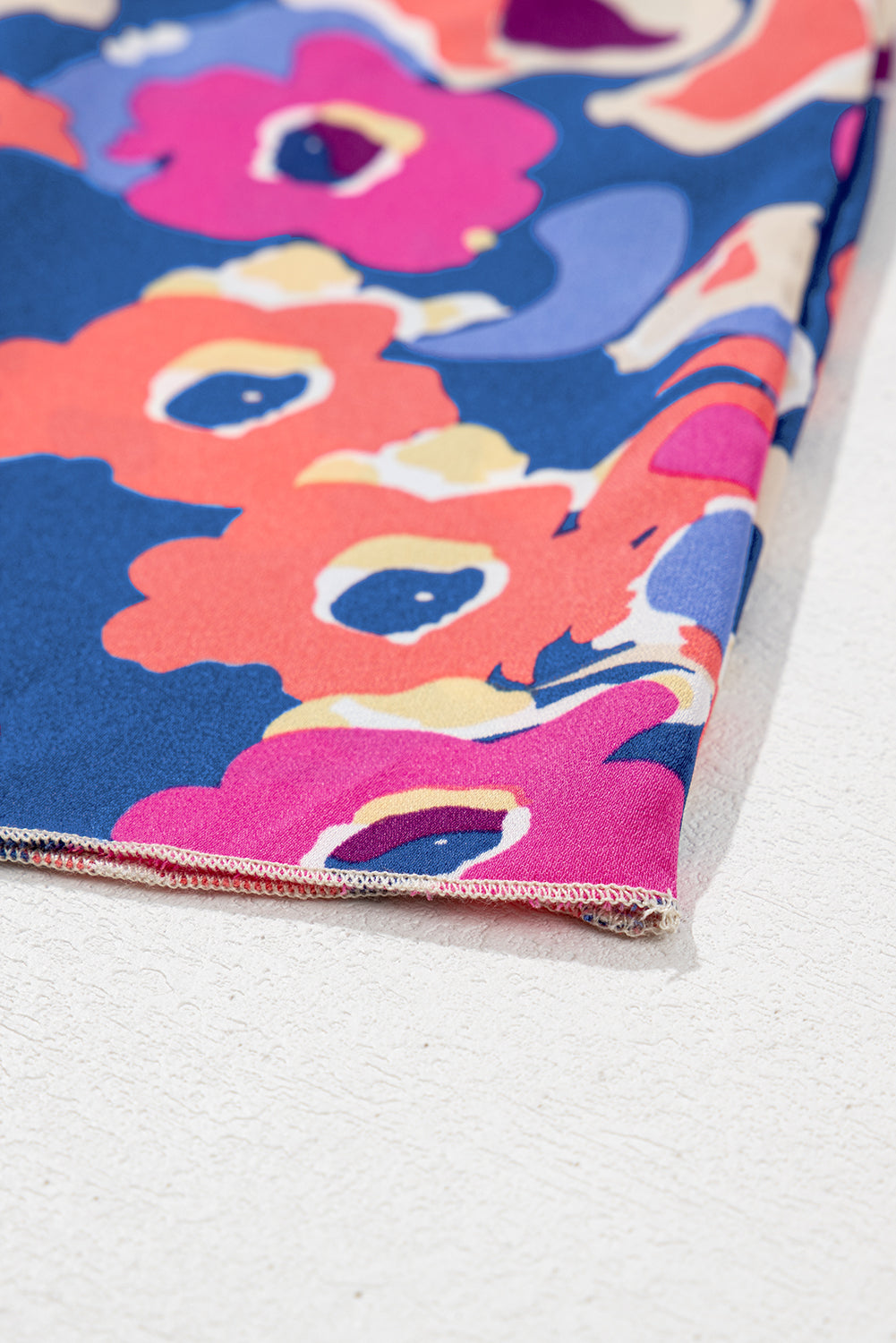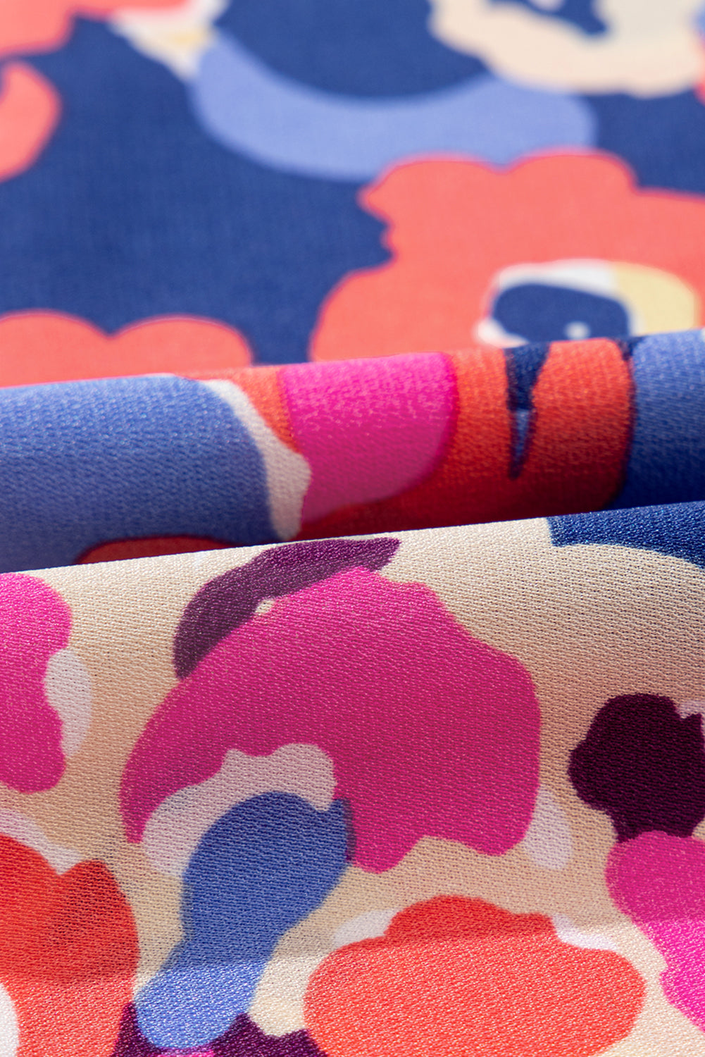Blue Plus Size Floral Print Ruffled 3/4 Sleeve Mini Dress