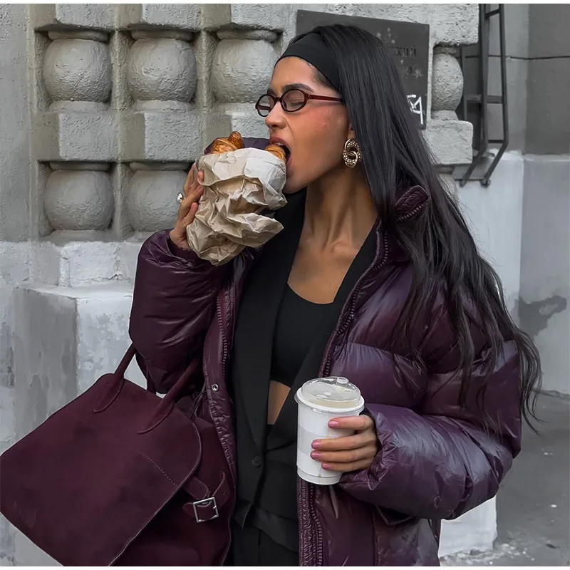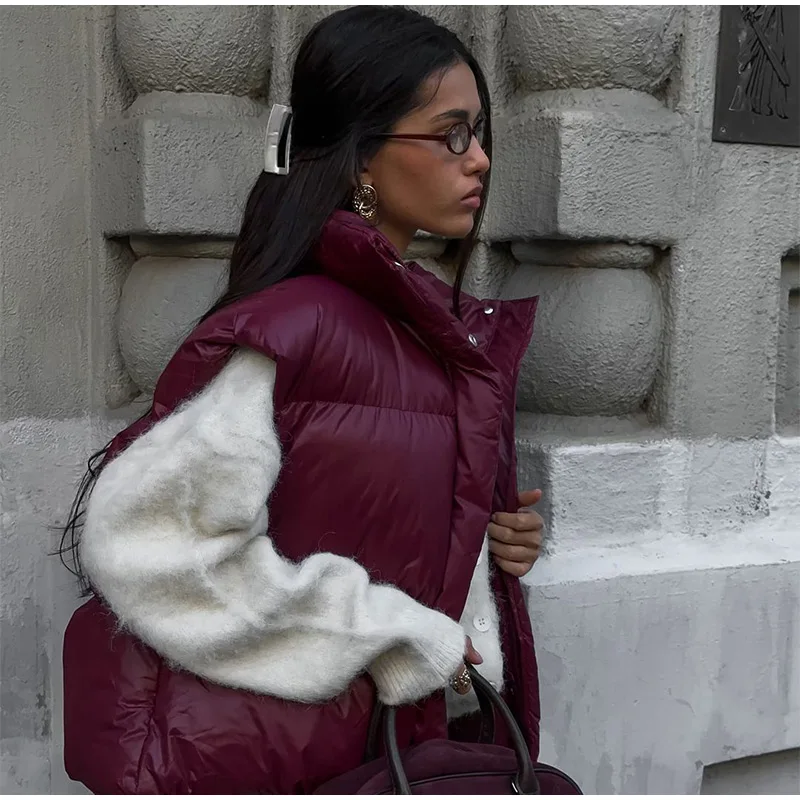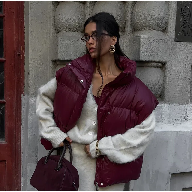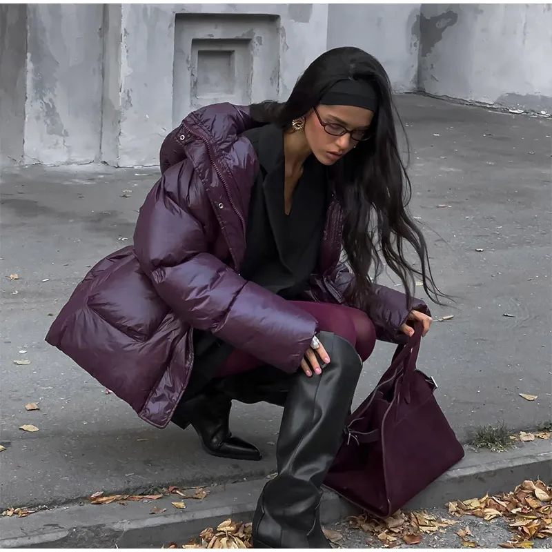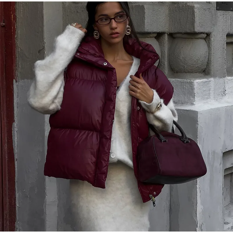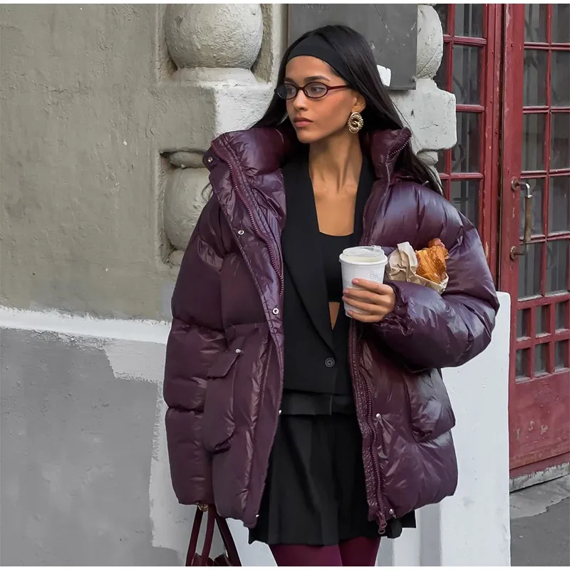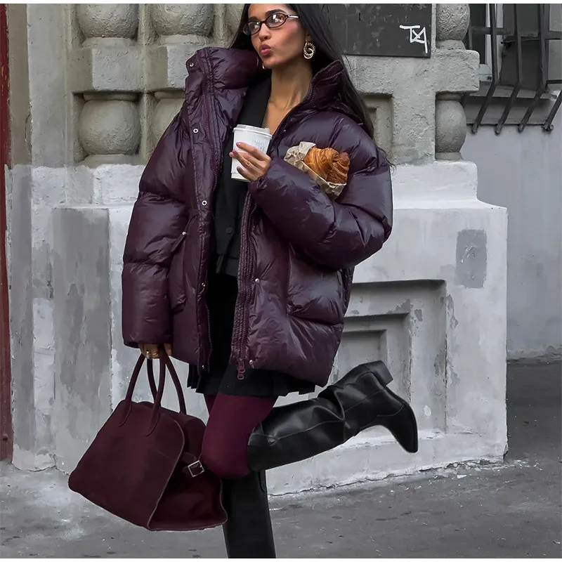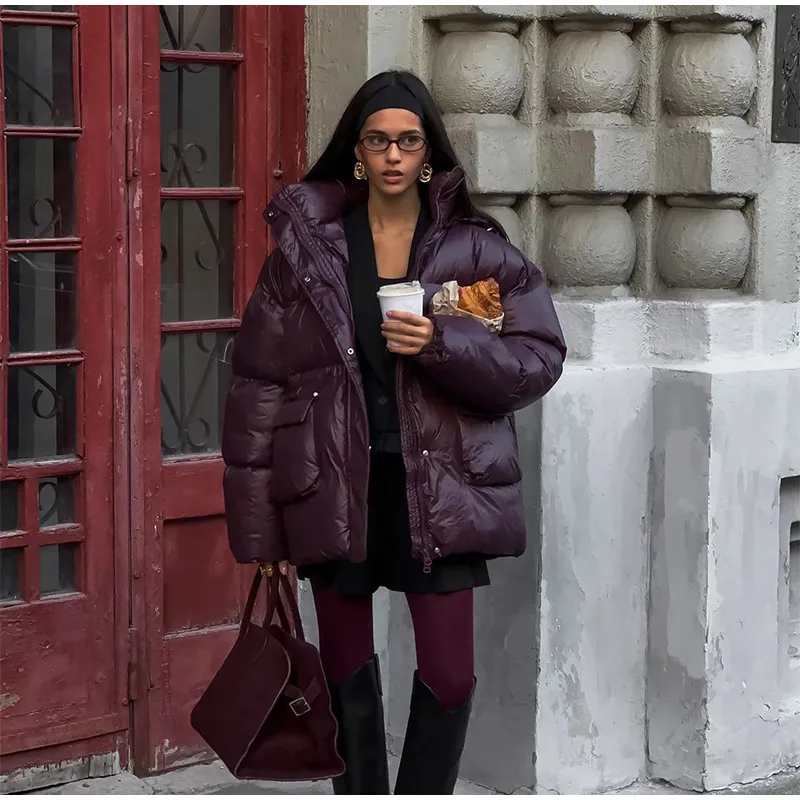 Casual Burgundy Lace Up Down Jacket Women Chic Lapel Button Pocket Thick Cotton Coat 2024 Autumn Winter Lady Highstreet Outwear