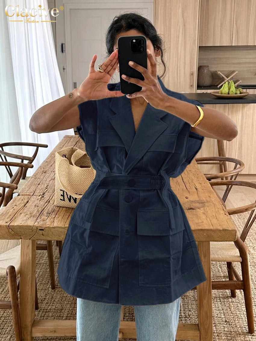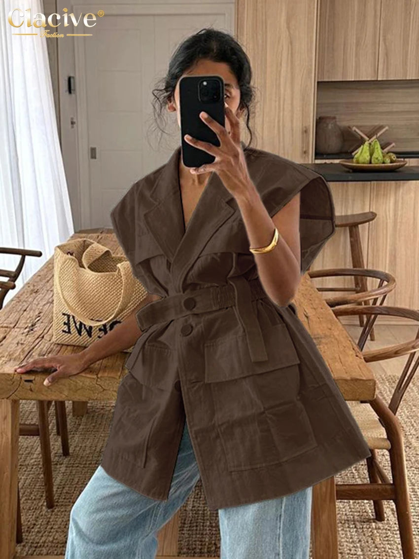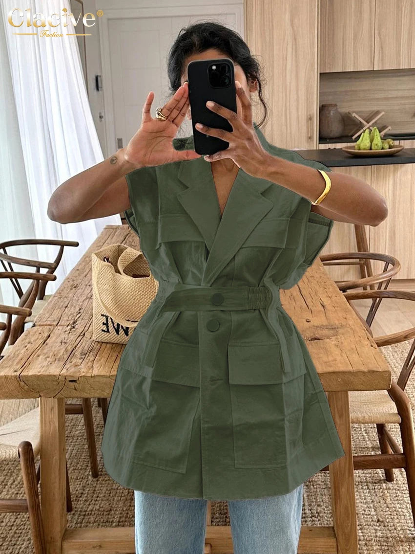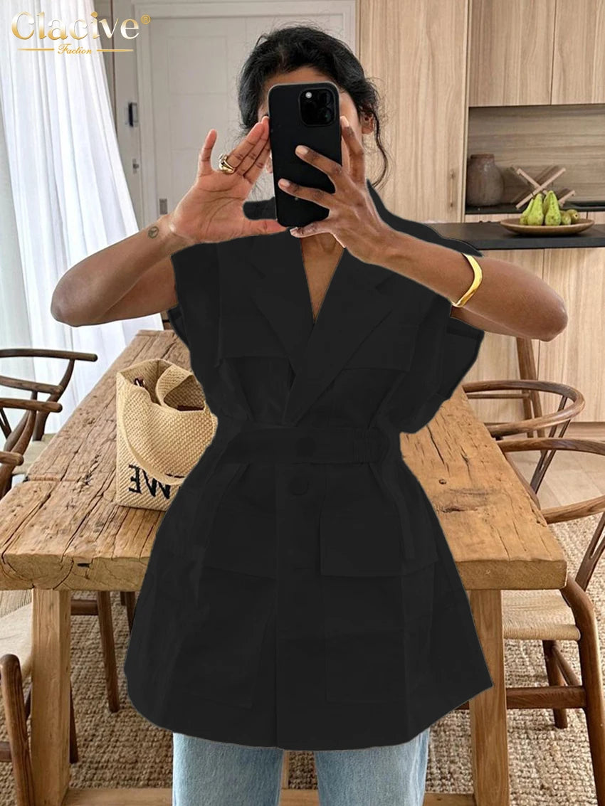 Clacive Fashion Loose White Cotton Women's Shirt 2024 Elegant Lapel Sleeveless Shirts Casual Classic Solid Top Female Clothing