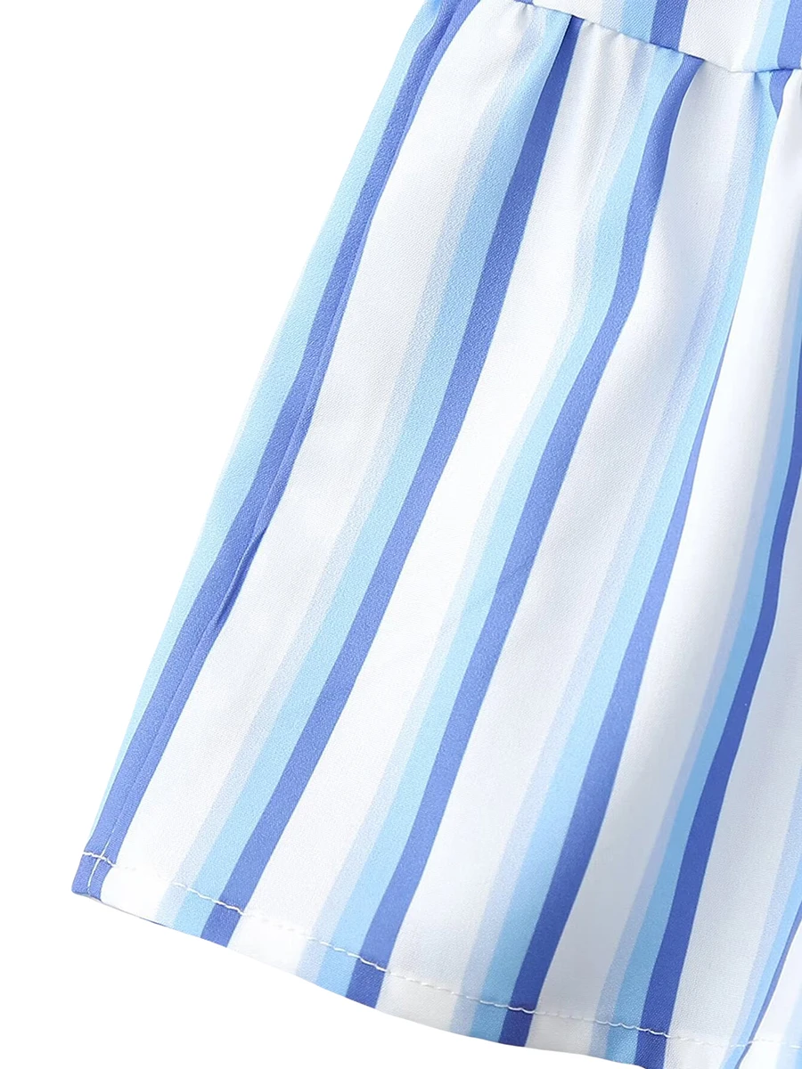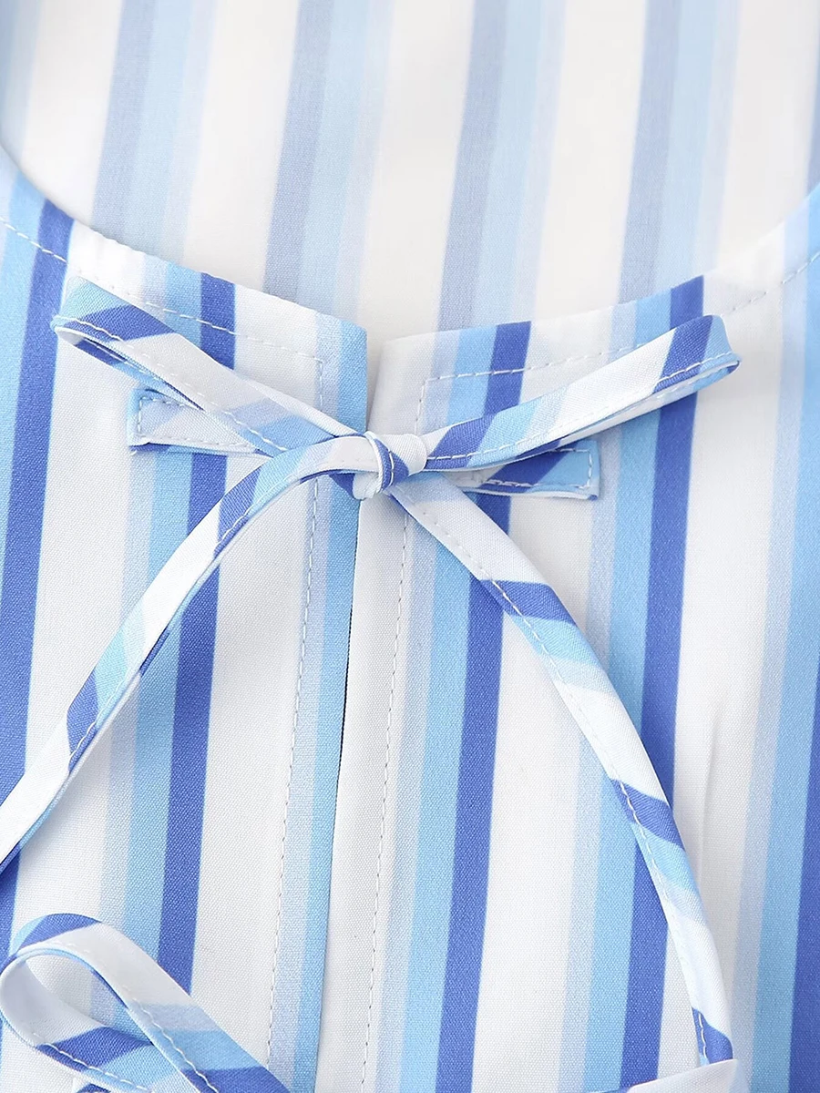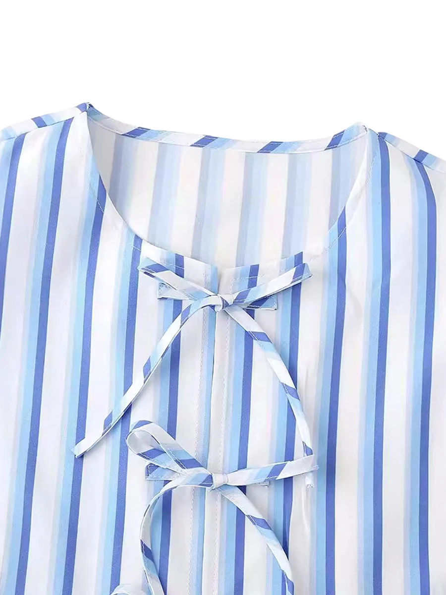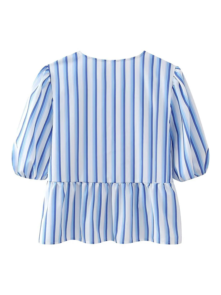 Women's Summer Babydoll T-Shirt Solid/Stripe Short Puff Sleeve Round Neck Tie-Up Front Peplum Tops