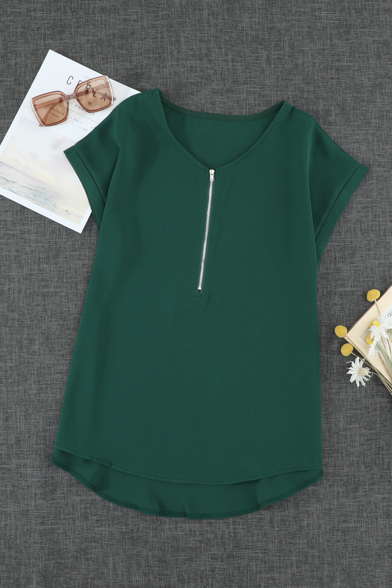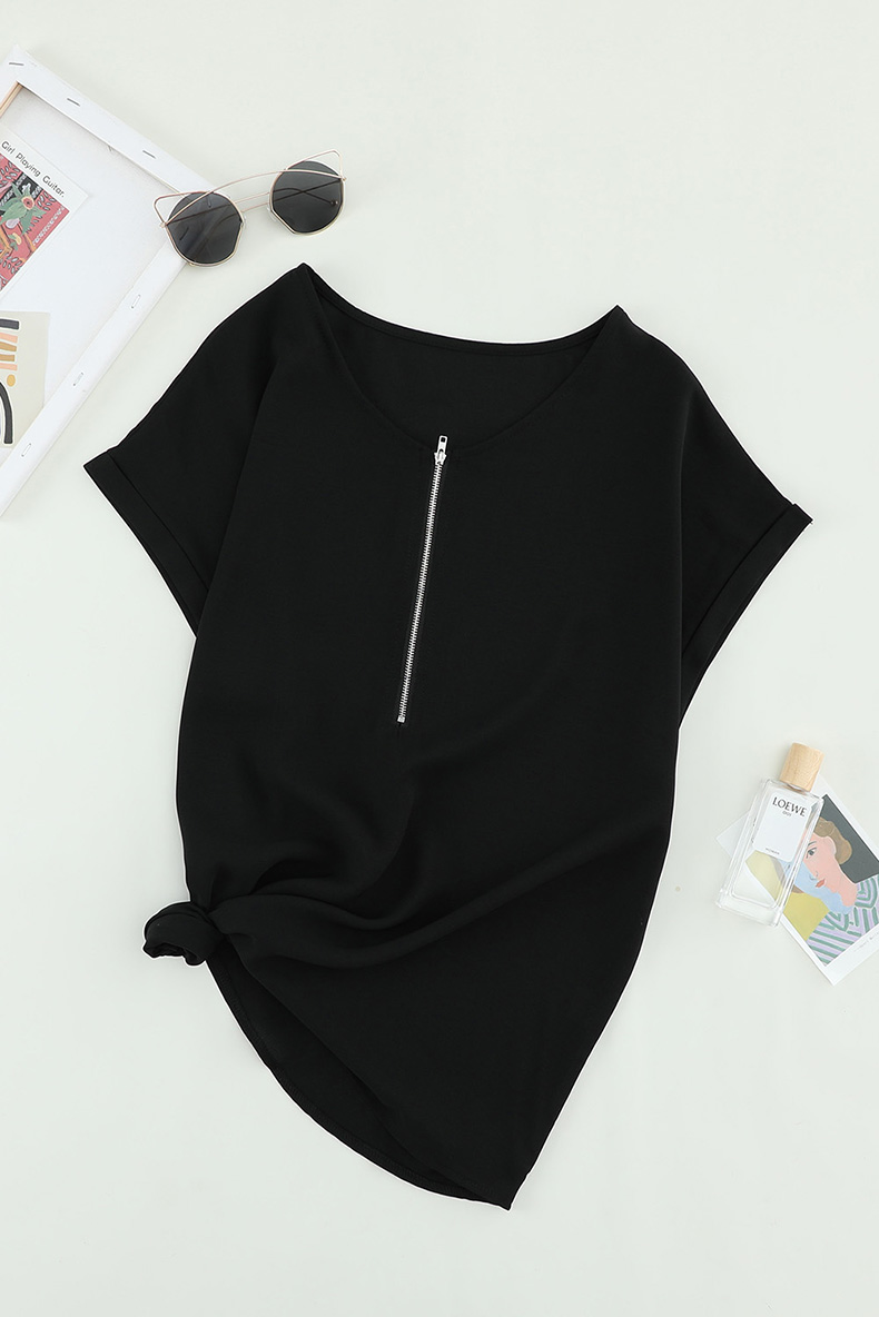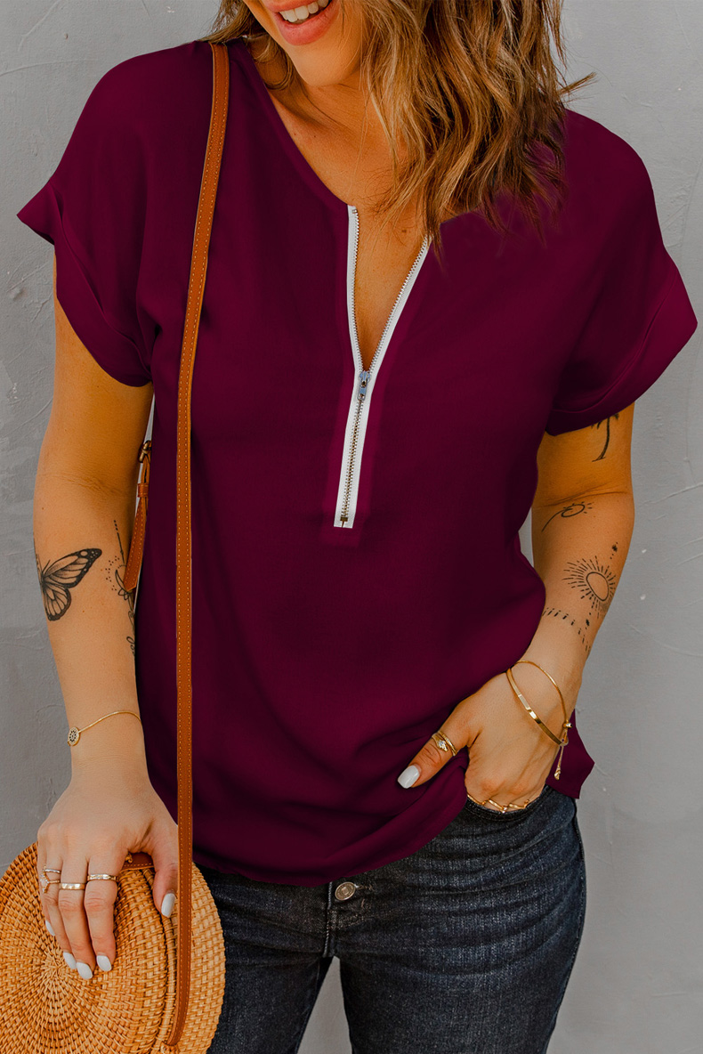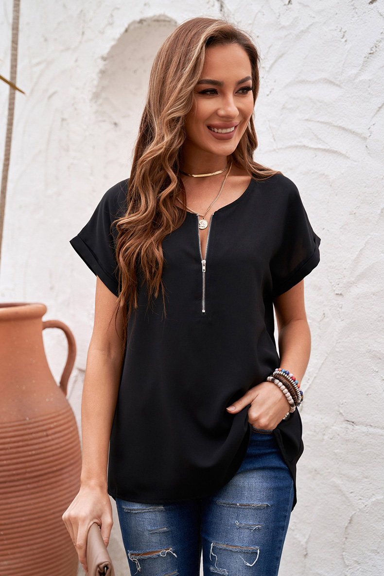 European-Style V-neck Half-Zip Casual All-Match Short-Sleeved Shirt