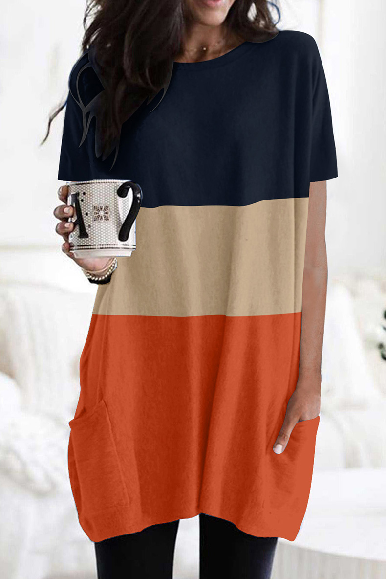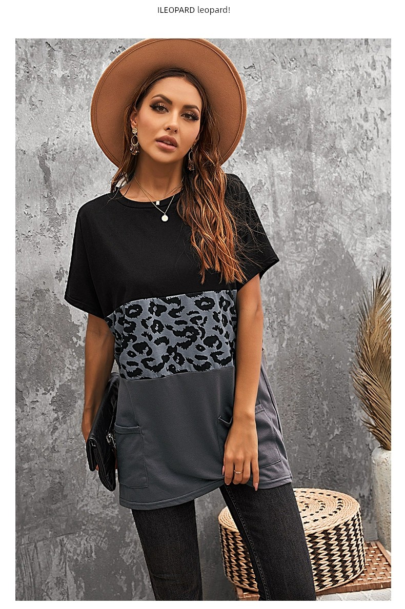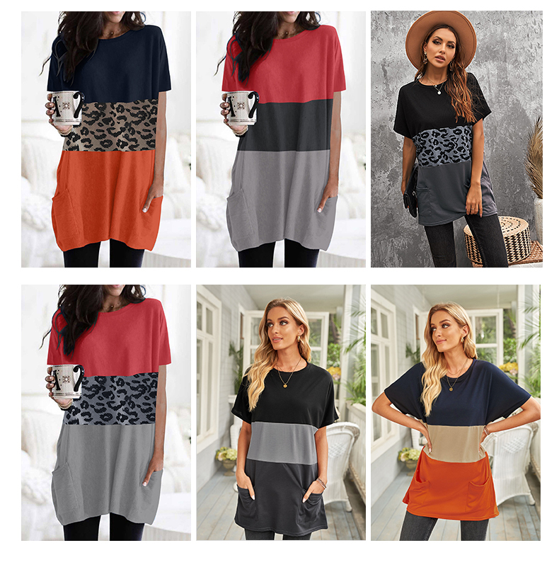 Fashion Summer Fashion Leopard Splicing T-shirt Skirt Trendy New Arrival Women's Loose Word Knee-Length Skirt 226168